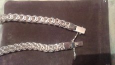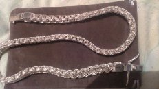 Так как это плетение само по себе достаточно объёмное и массивное, то минимальные возможные размеры также будут достаточно большими. Цепочка, изображённая на фотографиях текущей страницы, имеет по сути минимально возможную ширину (около 6мм), а также пропорции. Но длину при этих же пропорциях можно менять как в большую, так и в меньшую сторону, отчего соответственно измениться масса и стоимость.