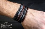 - Три шкіряних браслета з регулюванням на шнурку і один дерев'яний браслет.