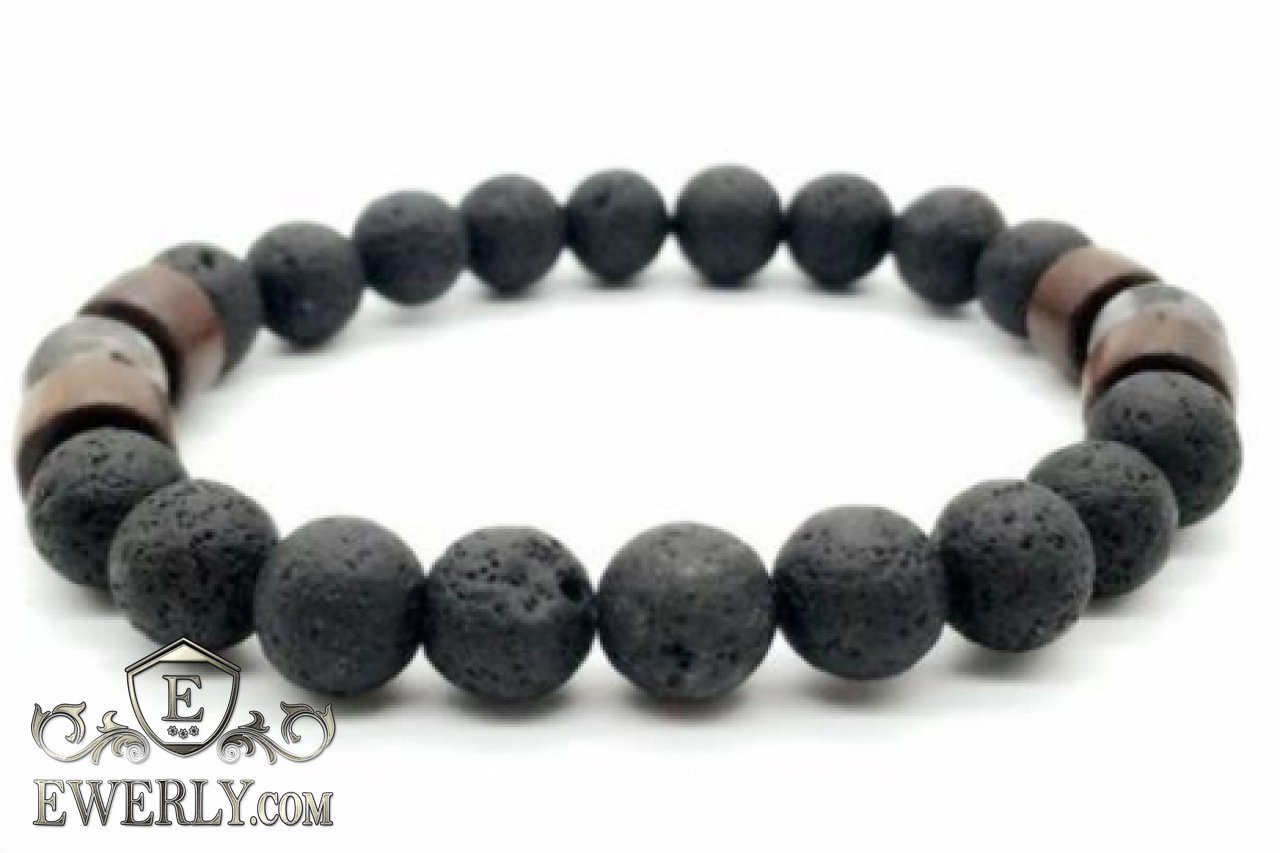 Кам'яний браслет - камінь вулканіт для чоловіка на руку 123033MC